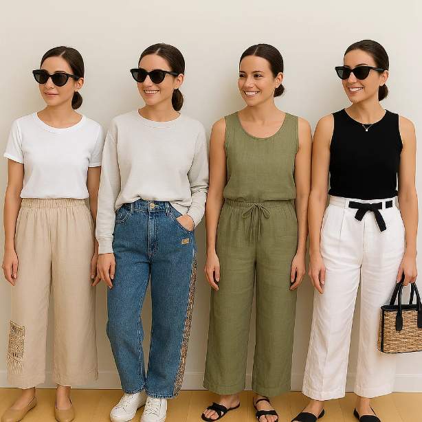 For warmer days, linen trousers and midi skirts provide an airy and sophisticated alternative. A wrap skirt or flowy maxi skirt brings femininity and movement to your outfits. Chic culottes or tailored shorts offer a refined option for casual outings. Opting for well-fitted silhouettes in breathable fabrics ensures a polished yet relaxed style.
